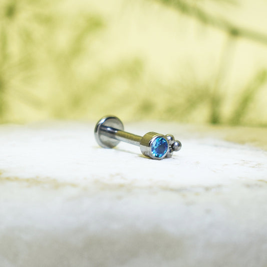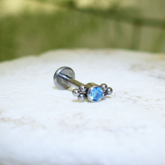 PIERCING LABRET BRILLO CELESTE REDONDO ORNAMENTOS