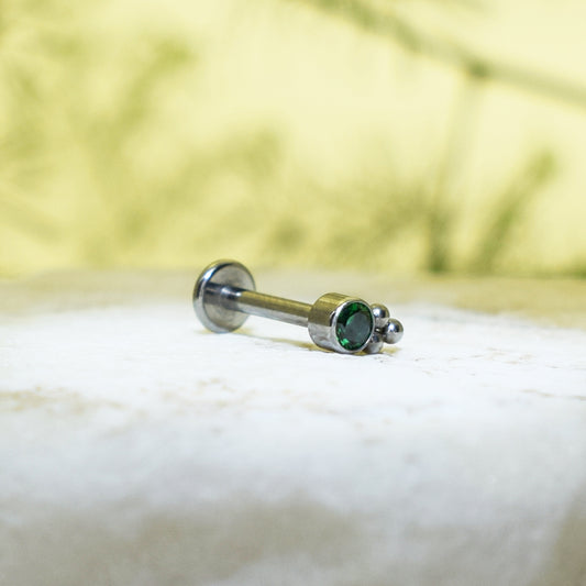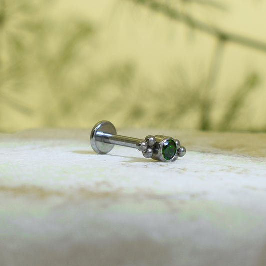 PIERCING LABRET BRILLO VERDE REDONDO CON ORNAMENTOS