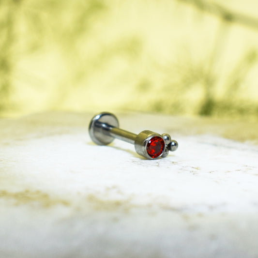 PIERCING LABRET BRILLO ROJO REDONDO ORNAMENTOS
