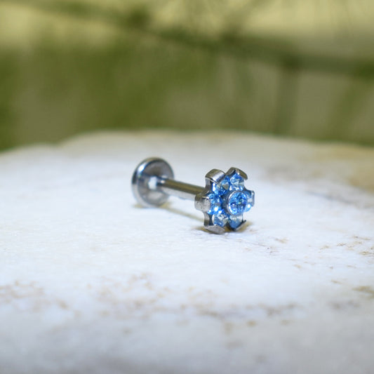 PIERCING LABRET FLOR BRILLO AZUL