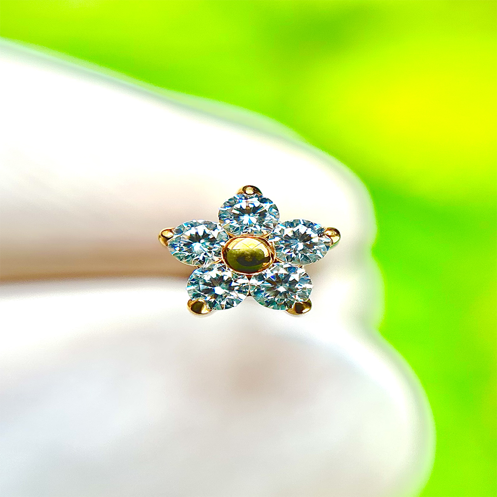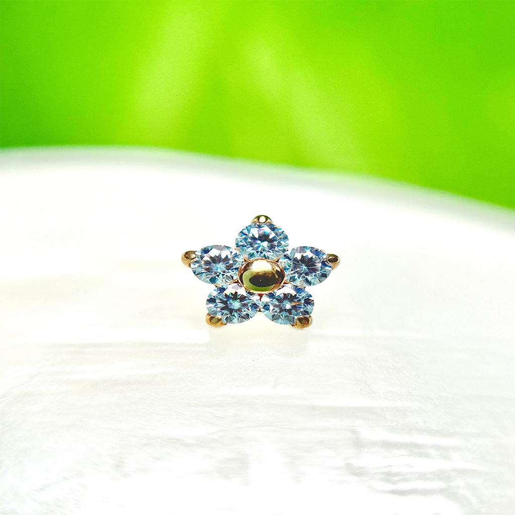 Hermosa joya de titanio grado implante con circones blancos de excelente brillo, ideal para perforaciones como hélix, tragus, flat, entre otras.