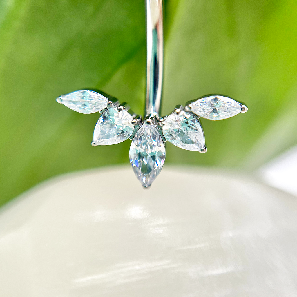 Hermoso piercing para ombligo con diseño exclusivo, circones de excelente brillo.
